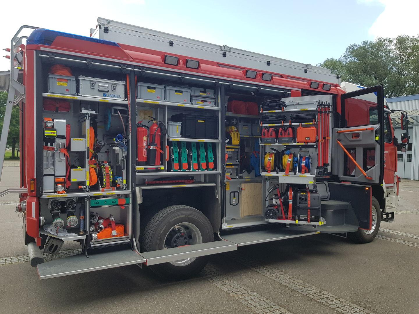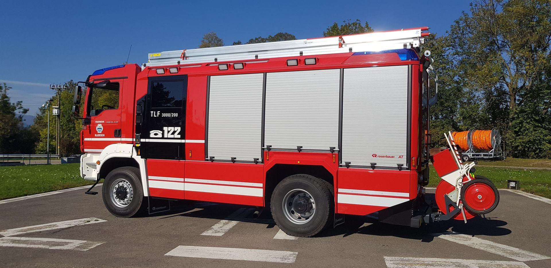 Zuwachs im Feuerwehrhaus Hohenems gibt es mit dem neuen Rüstfahrzeug. Das Fahrzeug bringt technisches Gerät an den Einsatzort und hat zudem einen Laderaum im Heck, welcher mit einem Rollcontainersystem schnell be- und entladen werden kann. Somit kann das Fahrzeug je nach Einsatzfall mit zusätzlichem Gerät ausgestattet werden.